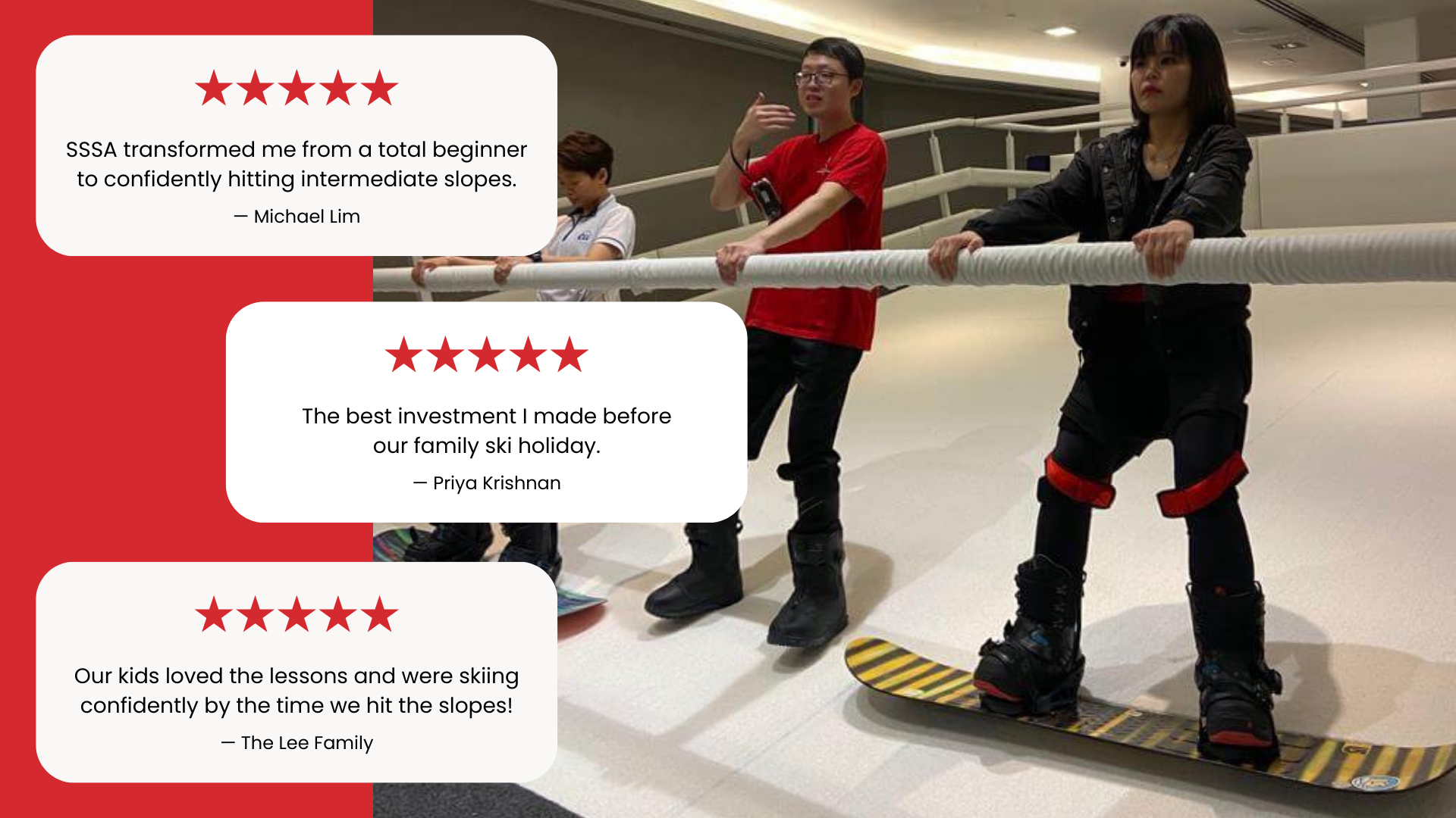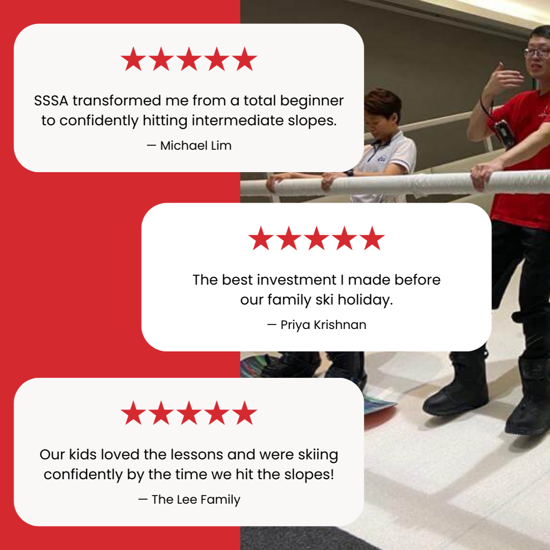 We’re Singapore’s only indoor ski academy built around one goal: getting you slope-ready before your holiday. Every lesson is run by internationally certified instructors — many with medals and decades of experience — so you and your kids learn the right way, right from the start.